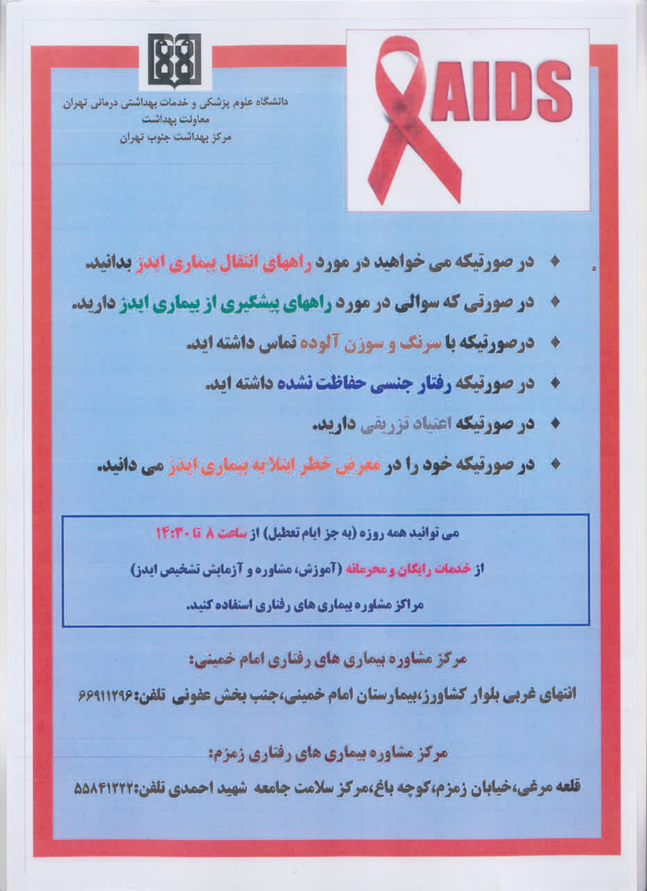 ایدز قابل پیشگیری است: بدانیم و ایمن بمانیم. ۲۹ مهر ۱۴۰۴ | ۱۰:۳۶ کد : ۹۴۳۴ اطلاعیه ها ارسال به دیگران نام شما ایمیل شما ایمیل دریافتکننده ارسال انصراف تعداد بازدید:۶۲