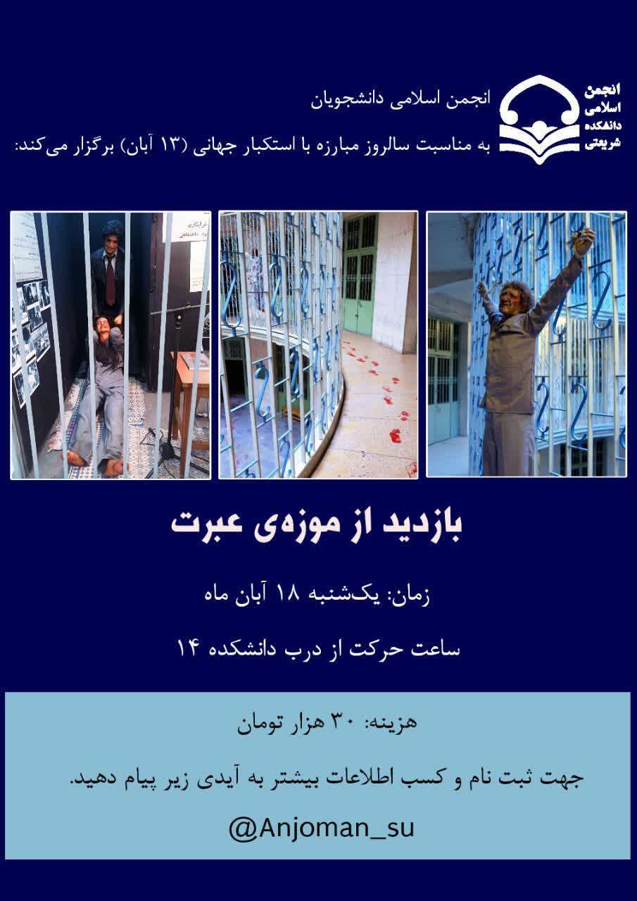 انجمن اسلامی دانشجویان دانشکده شریعتی به مناسبت سالروز مبارزه با استکبار جهانی (۱۳ آبان) برگزار میکند: